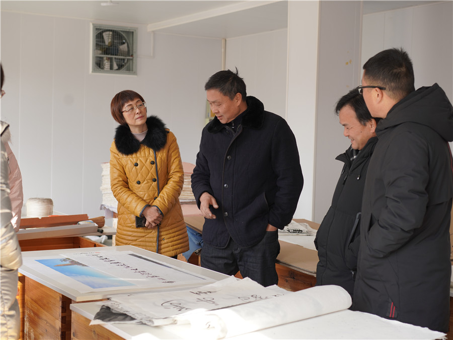 1月11日由市文旅局副局長王迎春帶隊的,黃山市非物質(zhì)文化遺產(chǎn)傳習(xí)基地驗收組到我司黃山市凝霜文化發(fā)展有限公司進(jìn)行調(diào)研工作。
