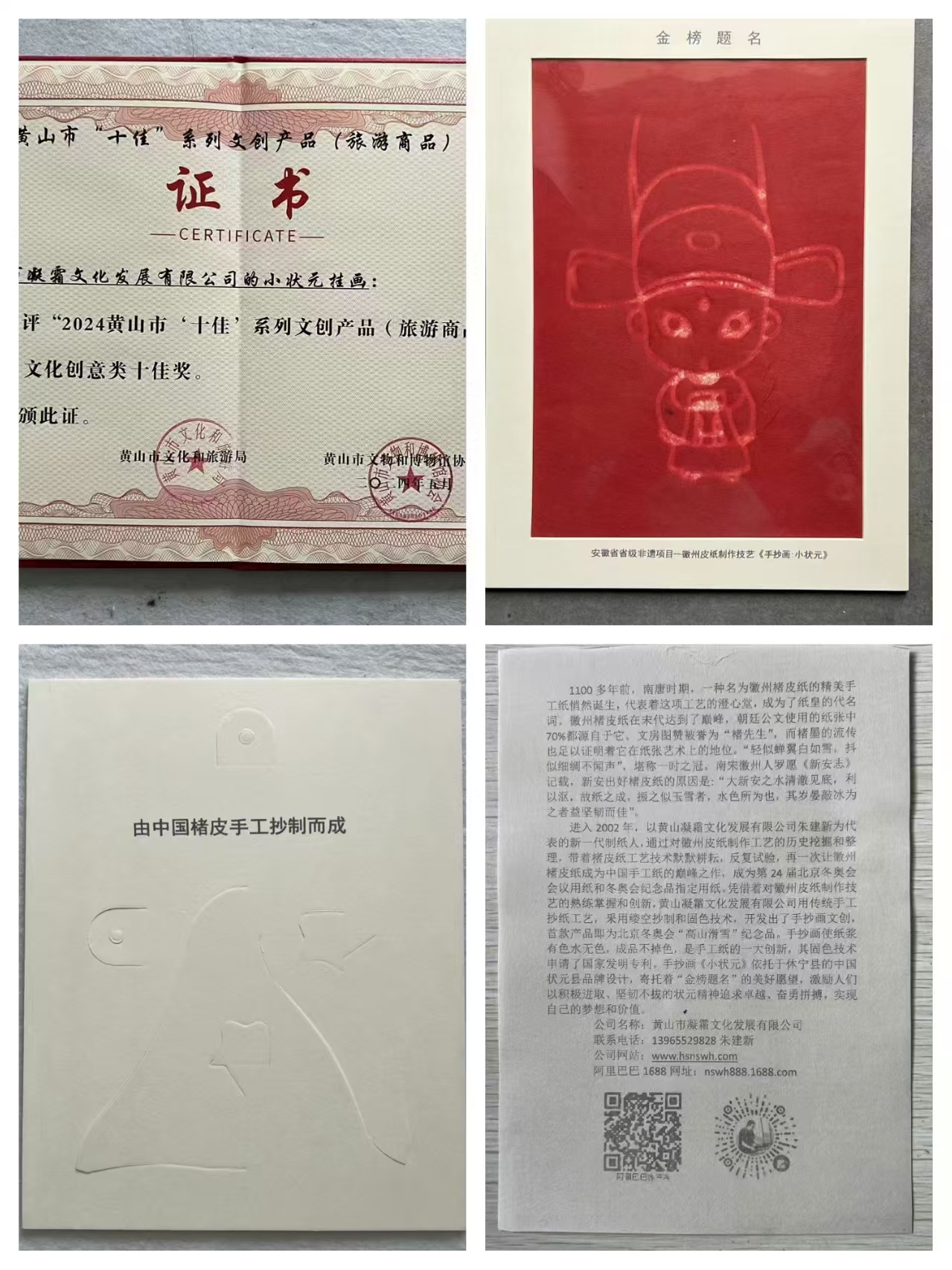 凝霜文化文創(chuàng)《小狀元掛畫》獲2024年黃山市“十佳”系列文創(chuàng)產品(旅游商品)稱號